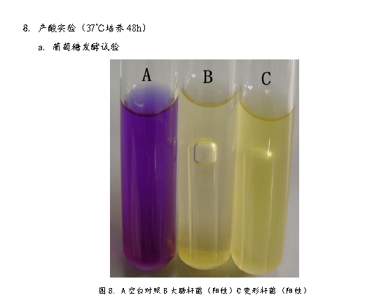 3、生化反應:氧化酶試驗陰性,發酵葡萄糖、乳糖、蔗糖等多種糖類,不發酵衛矛醇,TSI為A/A。IMviC--++,動力、鳥氨酸脫羧酶、賴氨酸脫羧酶和硝酸鹽還原試驗均為陽性,H2S、精氨酸雙水解酶試驗均為陰性 。